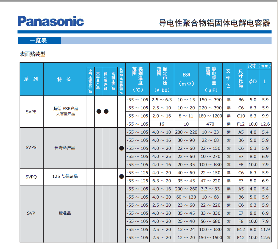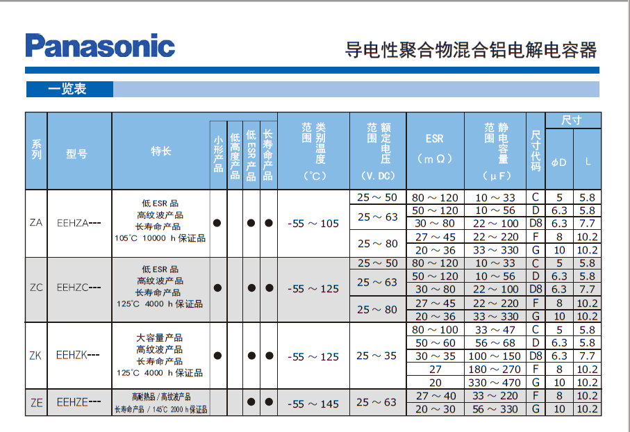 Panasonic through the use of conductive polymer materials, conductive polymer capacitor to achieve low ESR characteristics. Its great value, the characteristics of low ESR, the most fit to get rid of the noise in the wide domain, also has given it a stable temperature characteristics.